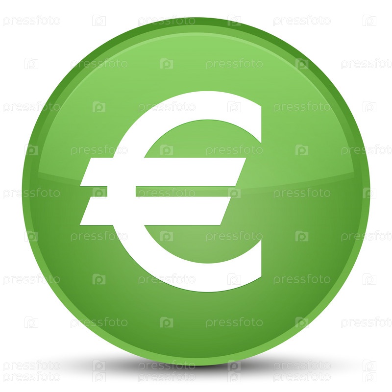 Икона знака евро специальная мягкая зеленая круглая кнопка