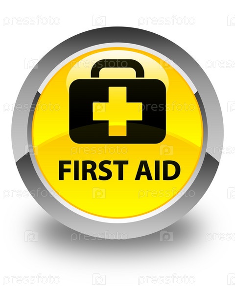 Первая помощь блестящая желтая круглая кнопка
