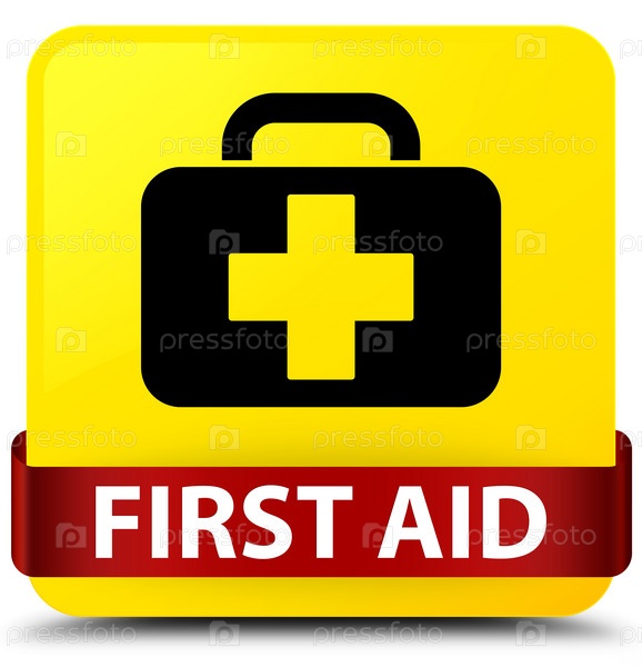 Первая помощь желтая квадратная кнопка красная лента посередине