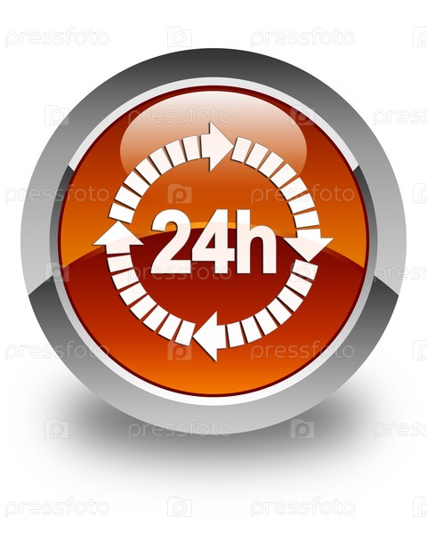 Икона доставки в течение 24 часов глянцевая коричневая круглая кнопка