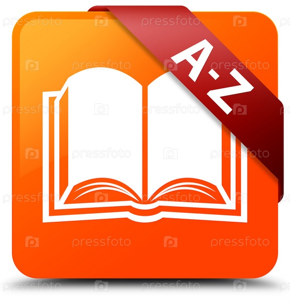 A-Z (икона книги) оранжевая квадратная кнопка красная лента в углу