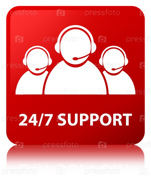 Поддержка 24/7 (икона команды по уходу за клиентами) красная квадратная кнопка