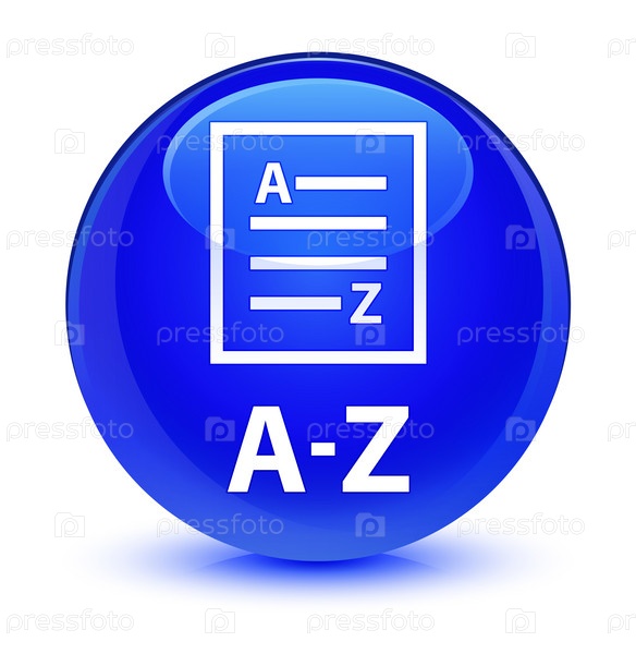A-Z (икона страницы списка) стеклянная голубая круглая кнопка А