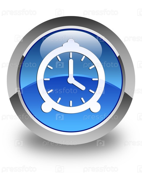 Икона будильника блестящая голубая круглая кнопка