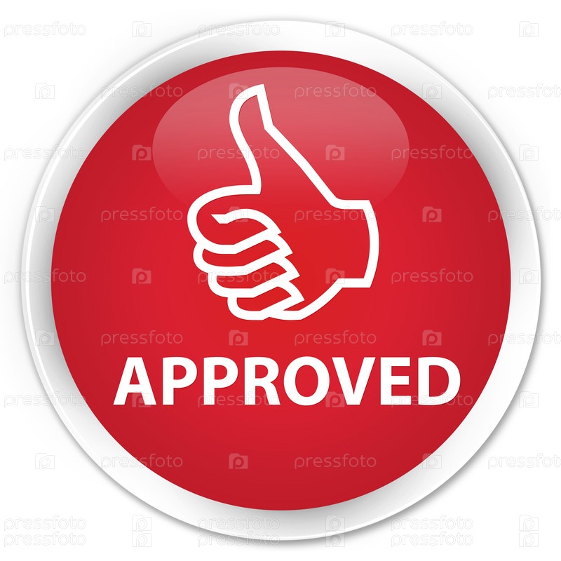 Утверждена (икона пальцев вверх) премиальная красная круглая кнопка