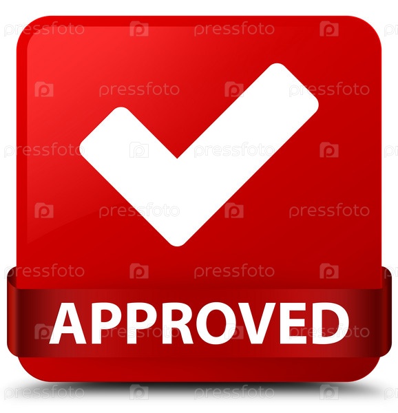 Approved (validate icon) красная квадратная кнопка Красная лента посередине