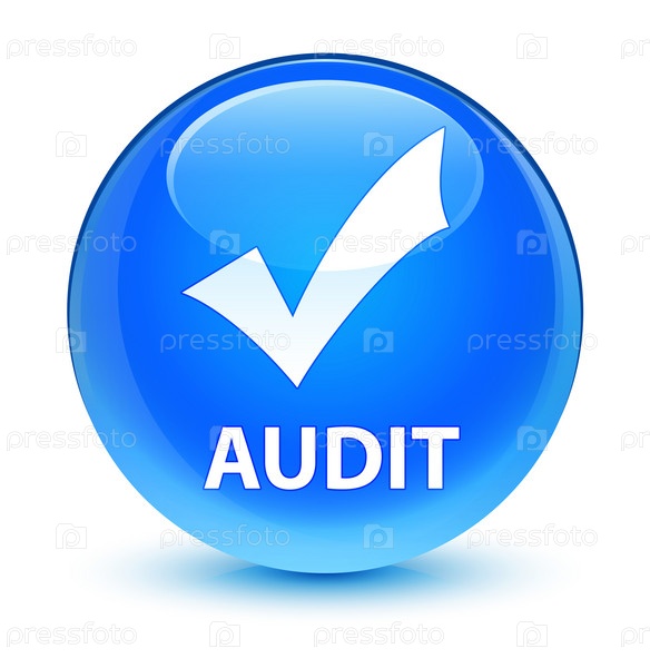 Аудит (икона проверки) стеклянный синий синеватый круглый кнопка