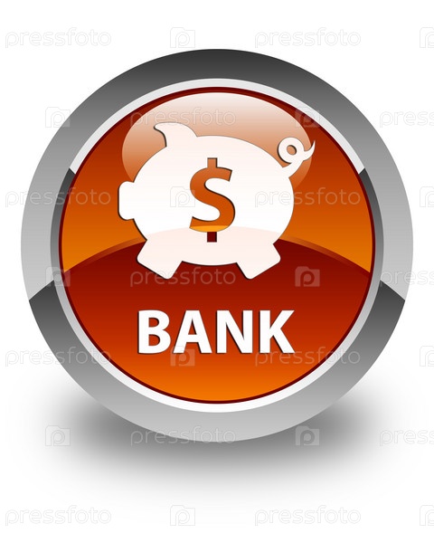 Банк (знак доллара свиного ящика) глянцевая коричневая круглая кнопка