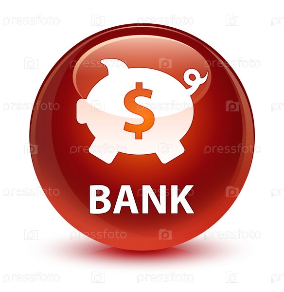 Банк (долярный знак свиного ящика) стеклянная коричневая круглая кнопка
