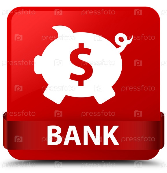 Банк (знак доллара свиного ящика) красная квадратная кнопка красная лента посередине