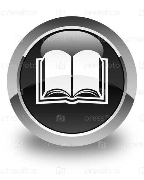 Икона книги глянцевая черная круглая кнопка