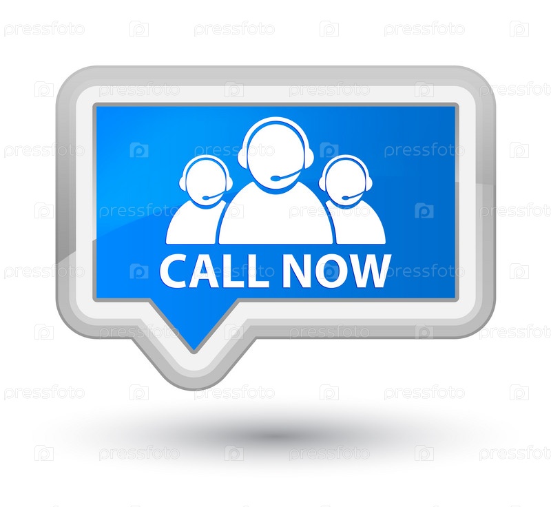 Позвоните сейчас (икона команды по уходу за клиентами) Prime cyan blue banner button