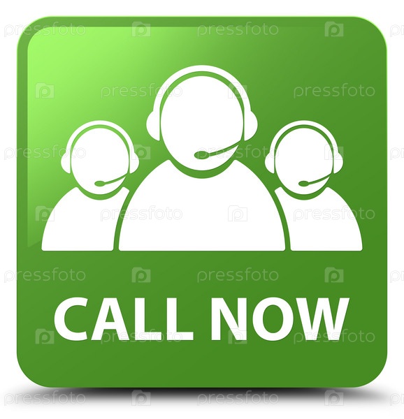 Позвоните сейчас (икона команды по уходу за клиентами) мягкая зеленая квадратная кнопка