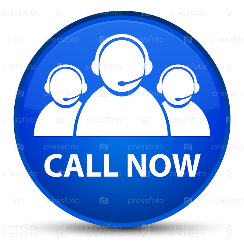 Позвоните сейчас (икона команды по обслуживанию клиентов) специальная голубая круглая кнопка