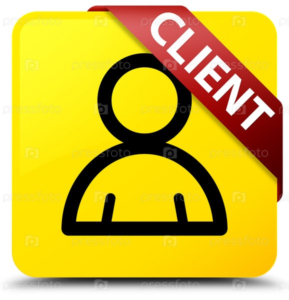Клиент (икона члена) желтая квадратная кнопка красная лента в углу