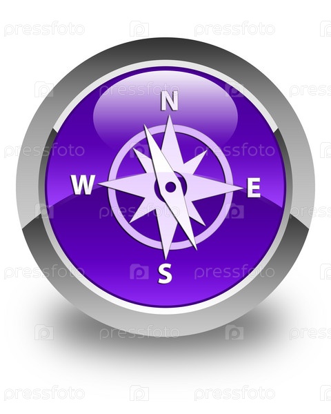 Икона компаса блестящая фиолетовая круглая кнопка