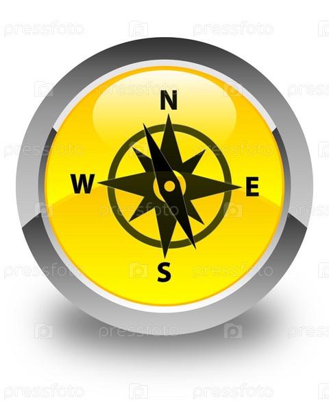 Икона компаса блестящая желтая круглая кнопка