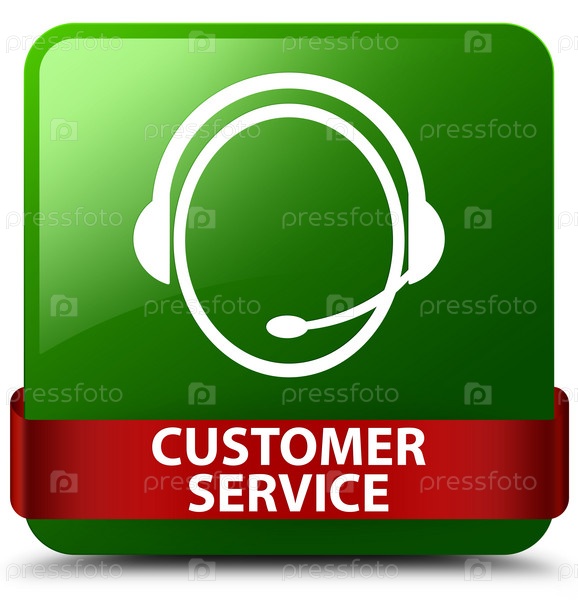 Служба поддержки клиентов (икона обслуживания клиента) зеленая квадратная кнопка красная лента посередине