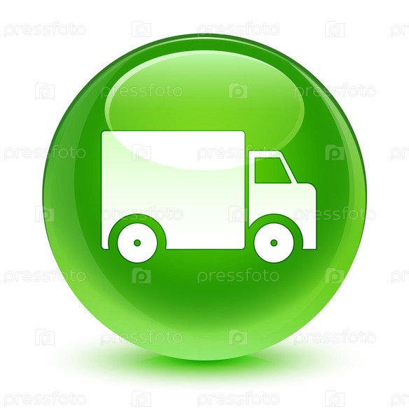 Икона грузовика-доставщика стеклянная зеленая круглая кнопка