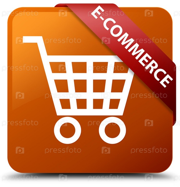 Электронная коммерция коричневая квадратная кнопка красная лента в углу