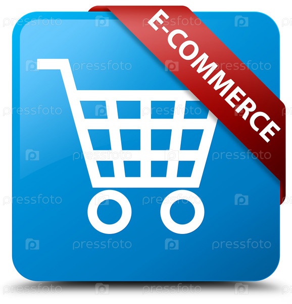 Электронная коммерция циан синий квадратный кнопка красная лента в углу