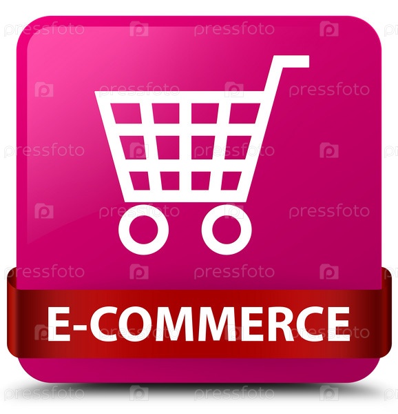 Электронная коммерция розовая квадратная кнопка красная лента посередине