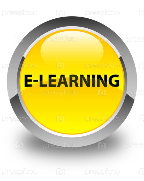 Электронное обучение с глянцевой желтой круглой кнопкой