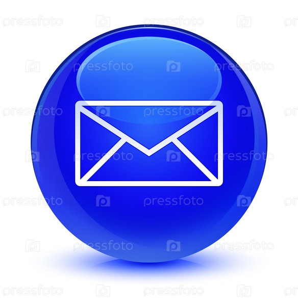 Икона электронной почты стеклянная голубая круглая кнопка