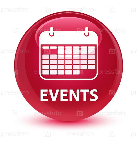 События (икона календаря) стеклянная розовая круглая кнопка