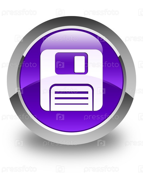 Иконка дискеты глянцевая фиолетовая круглая кнопка