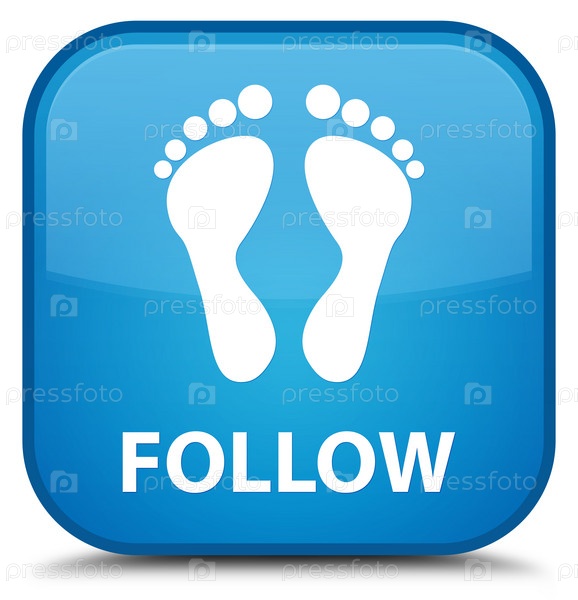 Следуйте (икона отпечатков) специальная синяя синевая квадратная кнопка