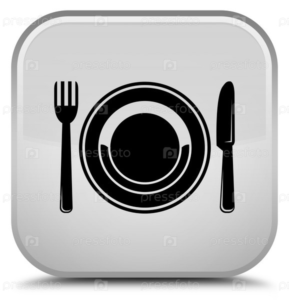 Икона пищевой тарелки - специальная белая квадратная кнопка