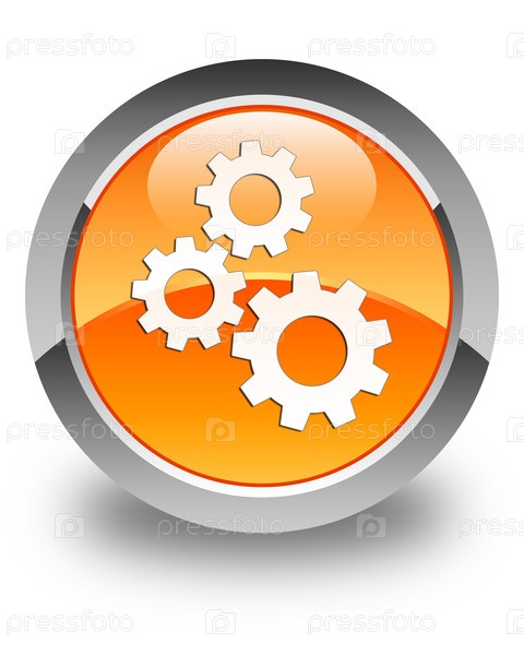 Икона Gears блестящая оранжевая круглая кнопка