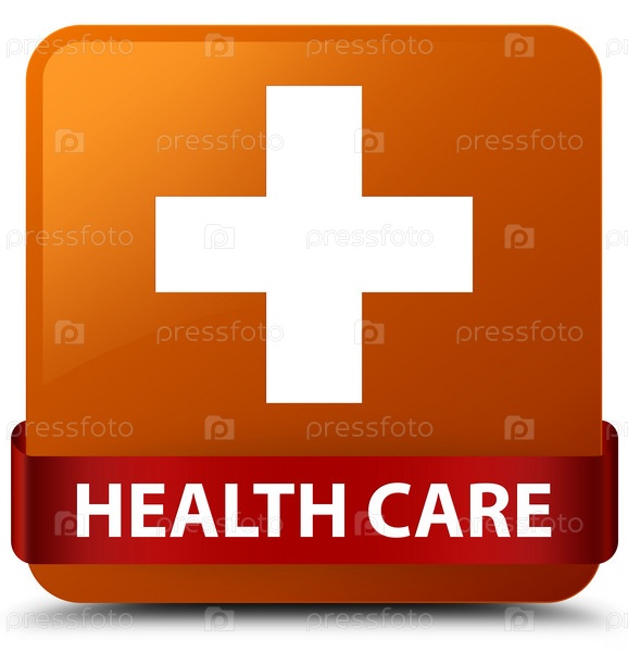 Здравоохранение (знак плюс) коричневая квадратная кнопка красная лента посередине
