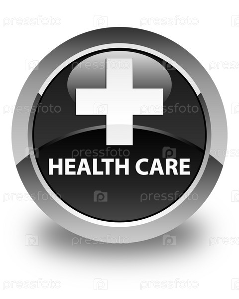 Здравоохранение (плюс знак) глянцевая черная круглая кнопка
