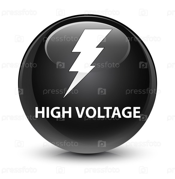 Высокое напряжение (икона электричества) стеклянная черная круглая кнопка
