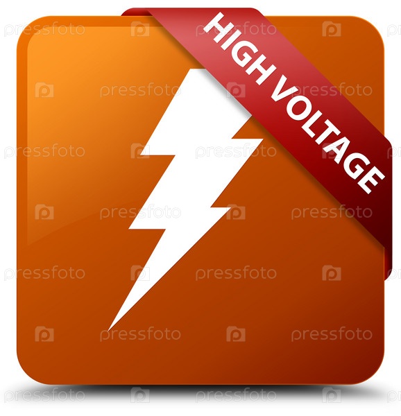 Высокое напряжение (икона электричества) коричневая квадратная кнопка красная лента в углу