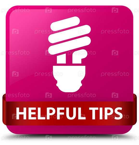 Полезные советы (икона лампочки) розовая квадратная кнопка красная лента посередине