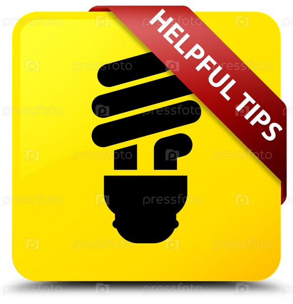 Полезные советы (икона лампочки) желтая квадратная кнопка красная лента в углу