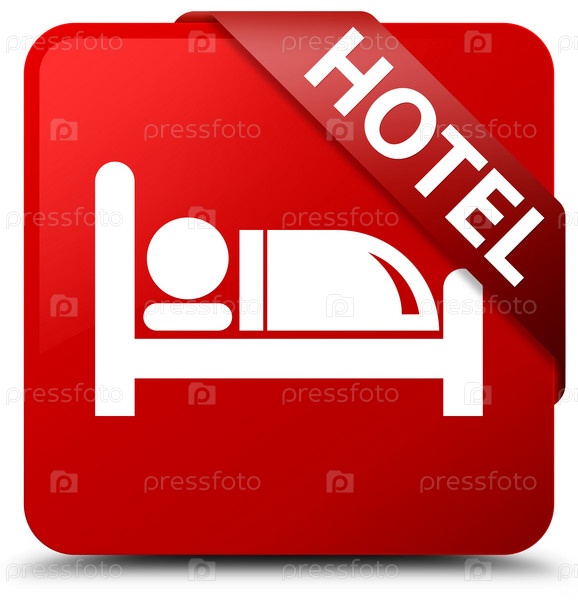 Гостиница красный квадратный кнопка красная лента в углу