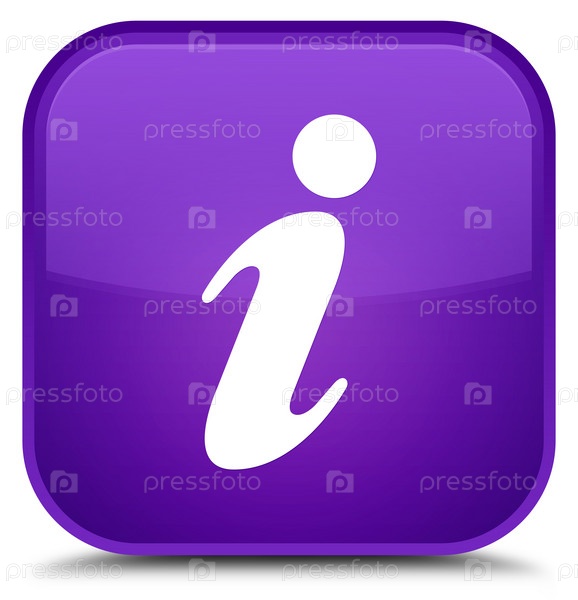 Иконка информации специальная фиолетовая квадратная кнопка