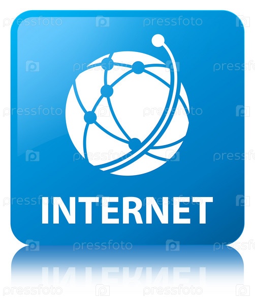 Интернет (икона глобальной сети) цыановый синий квадратный кнопка