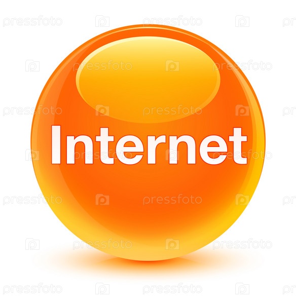 Интернет со стеклянной оранжевой круглой кнопкой