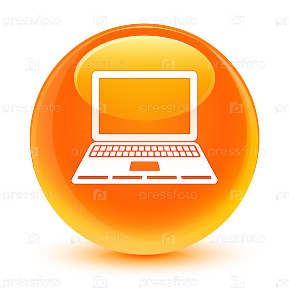 Икона ноутбука стеклянная оранжевая круглая кнопка