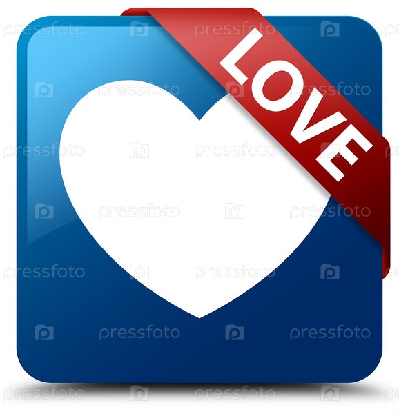 Люблю синий квадратный кнопка красная лента в углу
