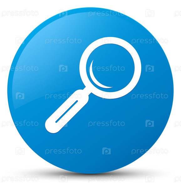 Икона увеличительного стекла цыановый синий круглый кнопка