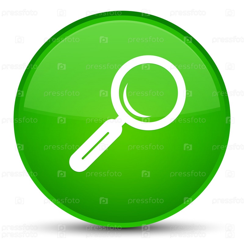 Икона увеличительного стекла специальная зеленая круглая кнопка