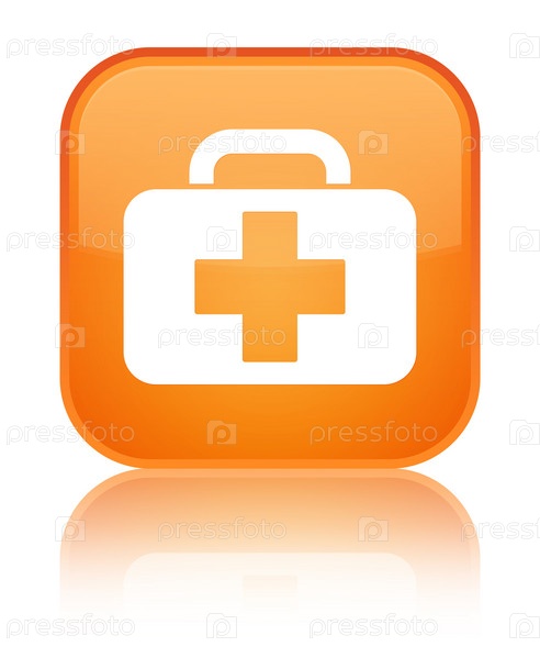 Икона медицинского пакета специальная оранжевая квадратная кнопка