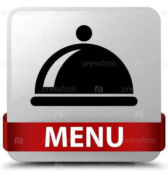 Меню (икона блюда) белая квадратная кнопка красная лента посередине