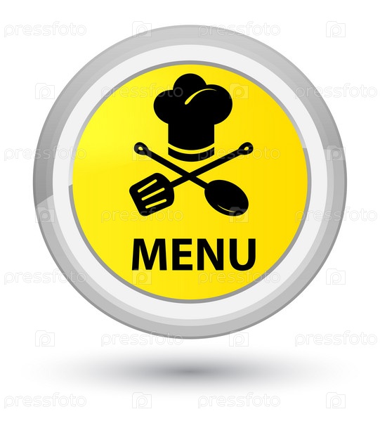 Меню (икона ресторана) первичная жёлтая круглая кнопка